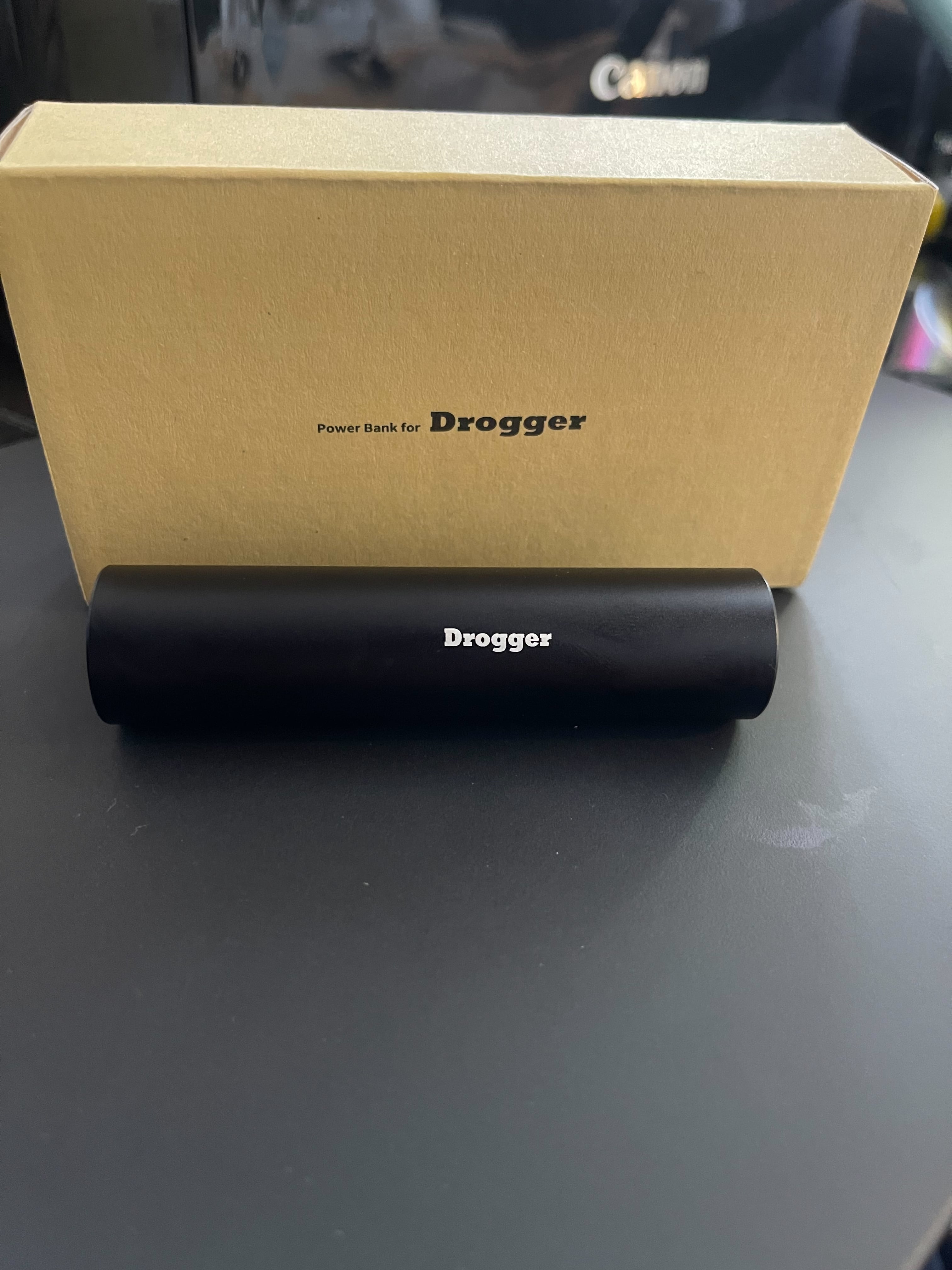 drogger専用のモバイルバッテリー droggerのロゴが刻印されているかっこいいモバイルバッテリーです。 充電対応ケーブルはタイプC Gパッケージとデータロガー用耐振バッテリーホルダーに対応。3500mAリチウムイオンバッテリー