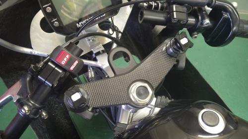カーボン製でトップブリッジの上から貼り付けるだけでキズや汚れで汚くなったトップブリッジをドレスアップ。
